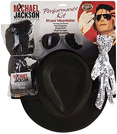 Licensed michael jackson kit wig glove hat glasses fancy dress halloween costume.